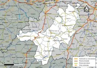 Carte de la communauté de communes Ouest Limousin au .