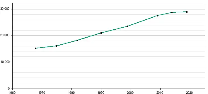 | Moussac | 30184 | Moussacois | 7,4 | 1 563 (2021) | 211 |
