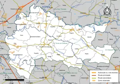 Située au sud du département des Landes, la communauté de communes Terres de Chalosse regroupe 34 communes et présente une superficie de 312,1 km2[2].