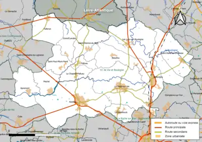 Située au nord du département de la Vendée, dans un territoire marqué du point de vue paysager par le Bocage, la communauté de communes de Vie et Boulogne regroupe 15 communes et s'étend sur 489,7 km2[6].