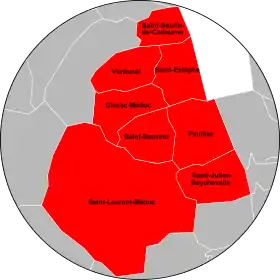 | Saint-Laurent-Médoc (siège) | 33424 | Saint-Laurentais | 136,55 | 4 517 (2014) | 33