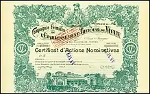 Convention de 1927 : convention confirmant la concession du domaine thermal de l'État à la Compagnie de Vichy jusqu'en 1970. La redevance annuelle est d'1 000 000 francs et les travaux dont le montant ne doit pas dépasser 25 000 000 francs :