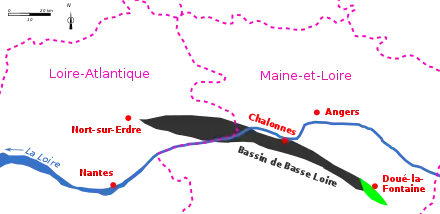 Le charbon du bassin houiller de Basse Loire appartient à l'âge Namurien (daté entre -325 et -315 millions d'années), exploité par 11 concessions et l'extrémité est appartient au Stéphanien (daté entre -307 et -299 millions d'années), exploité par une seule et unique concession, celle de Doué-la-Fontaine[1].