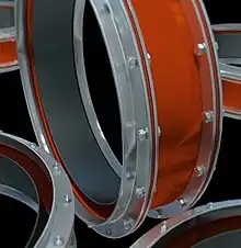 Certains types de joints de dilatation sont réalisés en caoutchouc avec un procédé de moulage. Les joints typiques qui sont moulés sont des joints de dilatation de taille moyenne comportant des tringles ; ils sont produites en grandes quantités. Ces joints de dilatation de caoutchouc sont fabriqués sur un mandrin cylindrique, qui est enveloppé d'une nappe de tissu coupé en biais. Puis des anneaux de renforcement sont disposés sur le mandrin, dont les extrémités sont repliées sur les anneaux. Cette partie est finalement placée dans un moule et moulée dans la forme et vulcanisée. Il s'agit d'une solution hautement automatisée utilisée pour produite grandes quantités du même type de joint[2].