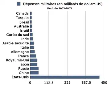- Le projet de budget du Pentagone pour l’année fiscale 2007 se monte à 439,3 milliards de dollars. Le budget total du gouvernement des États-Unis est de 2 770 milliards de dollars.