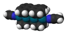- des complexes de bis(cyclobutadiène) (η4-C4H4)2M0, où le métal M est à l'état d'oxydation 0, comme l'évanescent (η4-C4H4)2Fe dont on connaît des dérivés accréditant la possibilité de son existence[6] ;