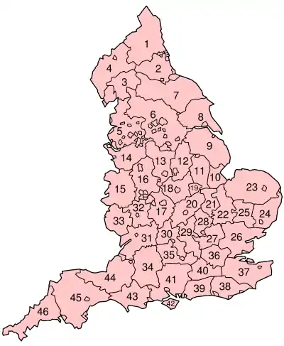 En 1974, les comtés administratifs d’Angleterre furent supprimés par la Loi de gouvernement local de 1972 (Local Government Act 1972). Ils furent remplacés par les Comtés métropolitains et non-métropolitains d'Angleterre.