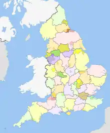 - (en) Cet article est partiellement ou en totalité issu de l’article de Wikipédia en anglais intitulé « Counties of England » (voir la liste des auteurs).