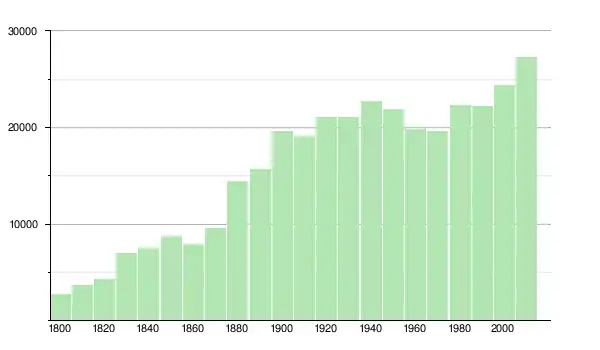 | 1950 | 21 878 | ▼ −3,47 % | |