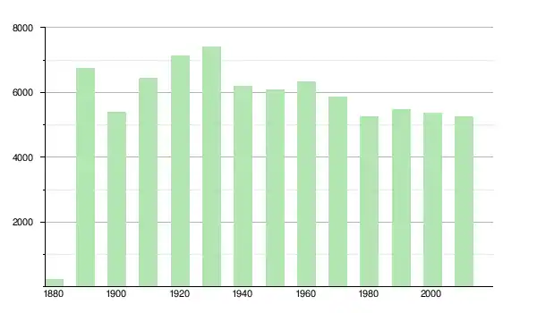 | 1950 | 6 076 | ▼ −1,92 % | |