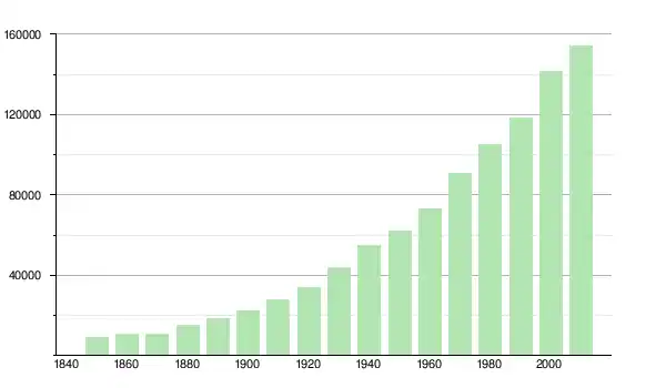 | 1950 | 61 794 | ▲ +13,07 % | |