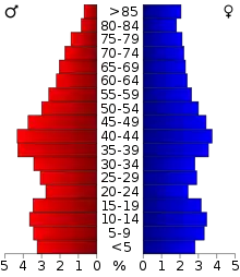 Pyramide d'âge du comté de Christian (en 2000).