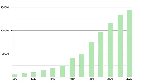 | 1960 | 41 857 | ▲ +75,06 % | |