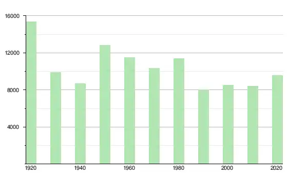 | 1930 | 9 886 | ▼ −35,65 % | |