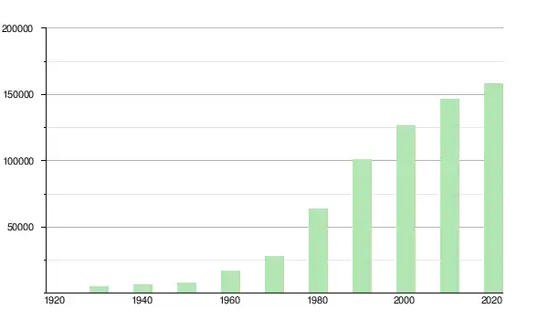 | 1980 | 64 014 | ▲ +128,34 % | |