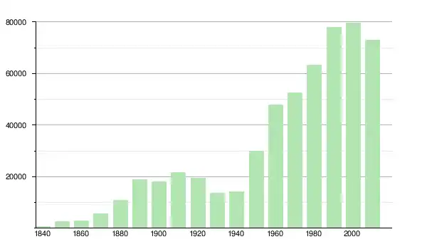 | 1950 | 29 957 | ▲ +112,79 % | |