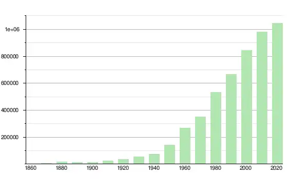 | 1950 | 141 216 | ▲ +93,88 % | |