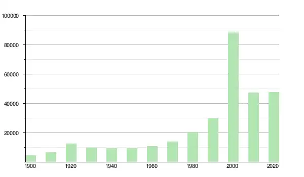 | 1990 | 29 676 | ▲ +45,05 % | |