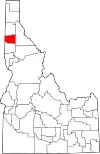 | Clearwater | 1911 | La Clearwater River, un tributaire principal de la Snake River, qui traverse le comté | Orofino | 8 577 | 6 444 | 6 364 | 80 | 1,3 | -2,1 % | ![]() |