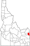| Caribou | 1919 | Les monts Caribou, une chaîne de montagne des montagnes Rocheuses orientée Nord-Sud qui s'étend dans le Sud-Est de l'État | Soda Springs | 6 808 | 4 658 | 4 569 | 89 | 1,5 | -2,2 % | ![]() |