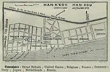 La concession française possédait un consulat, qui a vu passer Paul Claudel en 1897, une église, un hôtel municipal, un commissariat de police et une succursale de la Banque d'Indochine.