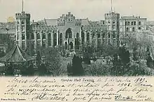 La concession française est établie en 1860. Traditionnellement, c'est l'état français, même sous la IIIe République, qui est protecteur des missions catholiques, françaises ou étrangères[1], et ce rôle est rempli scrupuleusement, aussi bien en Chine que de la part de la métropole. C'est ici qu'ont lieu les terribles émeutes anti-chrétiennes de 1870, qui provoquent la mort du consul Fontanier et de son chancelier, et détruisent la première église Notre-Dame-des-Victoires. Son successeur est le consul Charles Dillon (1842-1889) qui demeure à Tientsin, jusqu'en 1886. Il s'efforce de moraliser les bas-fonds de la ville fréquentés par les marins et de limiter les fumeries d'opium et est en bons termes[2] avec Li-Hong-Jang, vice-roi de la province. La concession est organisée selon le même principe que celle de Shanghai[3], et la municipalité est élue à partir de 1896. Le nouveau consul G. du Chaylard, arrivé en 1894, marque l'histoire de la concession en faisant construire de nouveaux bâtiments publics et reconstruire Notre-Dame-des Victoires. Cependant la densité des Français est faible : ainsi en 1902, ils ne sont que 70 résidents à temps plein pour 360 Européens et 4 300 Chinois dans la concession. Toutefois la concession abrite des maisons de commerce importantes, proche de la gare principale, et constitue de ce fait un passage obligé de la ville. Leur nombre est multiplié par dix en 1913[4], et les Français se comptent à environ 300 résidents. L'écrivain Paul Claudel est consul à Tientsin de 1906 à 1909, mais il regrette son ancien poste de Foutchéou et trouve la ville laide[5]. D'autre part, il indispose les fonctionnaires en recevant trop de missionnaires et il évoque dans son Journal l'hostilité du secrétaire de mairie à son égard qui était anticlérical et envoyait des lettres de dénonciation au Quai d'Orsay[6].