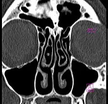 Concha bullosa bilatérale en scanner (coupe coronale)