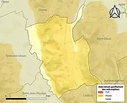 Le retrait-gonflement des sols argileux est susceptible d'engendrer des dommages importants aux bâtiments en cas d’alternance de périodes de sécheresse et de pluie[34]. 84,9 % de la superficie communale est en aléa moyen ou fort (59 % au niveau départemental et 48,5 % au niveau national)[Carte 5]. Depuis le , en application de la loi ELAN, différentes contraintes s'imposent aux vendeurs, maîtres d'ouvrages ou constructeurs de biens situés dans une zone classée en aléa moyen ou fort[Note 6],[35].