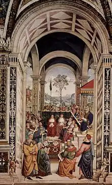Le peintre Mantegna avait été invité à Mantoue par Ludovic en 1457 ; bien qu'il fût resté à Padoue, il peignit pour le Podestà[3]. de cette ville l'Agonie au Jardin qui est à la National Gallery de Londres ; dans ce tableau, les disciples dorment à Gethsémani, tandis que Jérusalem est représentée comme Constantinople, avec le croissant qui signifie sa prise par les Turcs[4]. Longtemps après la mort du pape, l'artiste Pinturicchio peignit la convocation du concile parmi les scènes de la vie de Pie II sur les murs de la bibliothèque Piccolomini dans la cathédrale de Sienne.