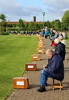 Ces concours sont encore présents en Belgique et dans quelques communes du Nord de la France[3]. Ils se déroulent le matin, dans un très grand calme, souvent entre 9 heures et 10 heures. La période de ces joutes s’étale d’avril à août. On appelle cela jouer à pinsons[4]. Un adepte des concours de pinsons, parfois aussi éleveur, est appelé pinsonnier, pinsonneur, ou pinsonneux, selon les régions. Le but est d’obtenir, en une heure, le plus grand nombre possible de chants du volatile. Les pinsonneux sont alignés côte à côte, séparés par une distance de 2,40 mètres[5]. Chacun d’eux, assis, a devant lui, posé par terre, une petite cage translucide dans laquelle se trouve un pinson (mâle) dont il ne peut être le propriétaire, mais qui appartient à son voisin. Une fois le coup d’envoi donné, il marque d’une barre, à l’aide d’une craie, sur une règle en bois numérotée (qui dans certains coins de Wallonie picarde porte le nom de rillet) chaque chant du pinson qu’il a face à lui. L’heure passée, on compte les chants pointés sur les règles. Le vainqueur est bien sûr celui dont le pinson a le plus de chants à son actif[6],[4].