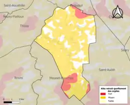 Le retrait-gonflement des sols argileux est susceptible d'engendrer des dommages importants aux bâtiments en cas d’alternance de périodes de sécheresse et de pluie. 81,5 % de la superficie communale est en aléa moyen ou fort (84,7 % au niveau départemental et 48,5 % au niveau national). Sur les 134 bâtiments dénombrés sur la commune en 2019, 108 sont en aléa moyen ou fort, soit 81 %, à comparer aux 86 % au niveau départemental et 54 % au niveau national. Une cartographie de l'exposition du territoire national au retrait gonflement des sols argileux est disponible sur le site du BRGM[23],[24].