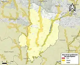 Le retrait-gonflement des sols argileux est susceptible d'engendrer des dommages importants aux bâtiments en cas d’alternance de périodes de sécheresse et de pluie. 20,3 % de la superficie communale est en aléa moyen ou fort (26,8 % au niveau départemental et 48,5 % au niveau national). Sur les 436 bâtiments dénombrés sur la commune en 2019, 27 sont en aléa moyen ou fort, soit 6 %, à comparer aux 36 % au niveau départemental et 54 % au niveau national. Une cartographie de l'exposition du territoire national au retrait gonflement des sols argileux est disponible sur le site du BRGM[20],[Carte 2].