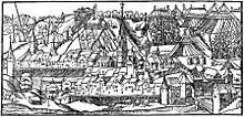 Fondée par les Zähringen en 1191, la ville de Berne se développe rapidement à la suite de la disparition de cette famille ; après avoir obtenu le statut de ville libre impériale et avoir signé plusieurs accords avec Fribourg, Morat, puis Soleure et Payerne[durrenmatt 11], la ville mène une vigoureuse politique d'expansion dès le début du XIIIe siècle et se heurte d'abord aux Habsbourg-Autriche, puis aux Kibourg-Berthoud. À la suite de la victoire de Louis de Bavière sur Frédéric le Bel, la ville conclut en 1323 sa première alliance avec les Waldstätten, également opposés aux Habsbourg[15]. L'hostilité des différents adversaires de la ville se traduit par la formation d'une large coalition regroupant Fribourg, les évêques de Bâle et de Lausanne ainsi que de nombreux nobles de la partie francophone du territoire suisse actuel qui envoient une déclaration de guerre à Berne lors des fêtes de Pâques de 1339. L'armée bernoise, forte de 6000[16], commandée par Rodolphe d'Erlach et comprenant des troupes uranaises, schwytzoises, unterwaldiennes et soleuroises, part le 21 juin de Berne en direction de Laupen où elle bat ses adversaires lors de ce premier épisode qui se termine après la bataille du Schönberg le et l'incendie des faubourgs de Fribourg[17].