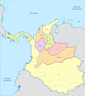 La réforme constitutionnelle de 1853 introduit le fédéralisme dans le pays et le le premier État fédéral est créé : Panama[1]. Suivent dans cette voie les États d'Antioquia le [2] et Santander le [3]. Afin d'éviter l'éclatement du pays, le Congrès adopte la loi du qui crée les États de Bolívar, Boyacá, Cauca, Cundinamarca et Magdalena (l'État de Tolima sera créé le par la sécession d'une partie de l'État de Cundinamarca).