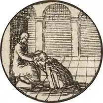 - Pour l'église catholique, la confession est composée de trois parties : contritio cordis (la contrition du cœur), confessio oris (la confession de la bouche) et satisfactio operis (satisfaction des actes)[10]. Les réformateurs ont aboli la satisfaction des actes, jugeant que la confession n'est constitués que de deux parties : la confession du pénitent et l'absolution prononcée par le confesseur[11]. Cela signifie que la foi ou la confiance en la capacité de Jésus, active et passive de donner l'absolution au pénitent grâce à la procédure de l'absolution, est totale.