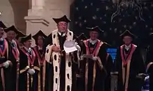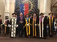 - La robe du grand maître porte un parement d'Hermine sur le col, le devant et le bas des manches.