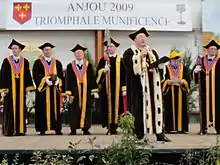 - L' oriflamme aux couleurs de l' Anjou reproduit les symboles du blason.