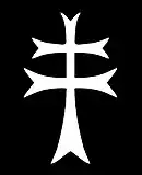Cette croix d'argent à double traverse, espèce de croix de Lorraine, était portée par les laïcs de la Confrérie et par les membres religieux de l'Ordre sur leur manteau (noir) et sur leur robe bleue "blème" (très pâle) ou leur soutane, bleu ciel et qui devint noire au XVe siècle.