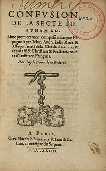 - Juan Andrés (en), Confusion de la secte de Muhamed, livre premièrement composé en langue espagnole, par Jehan André et tourné d'italien en françois par Guy Le Fevre de La Boderie, Martin Le Jeune, 1574 (Andrés, Juan, « Confusion de la secte de Muhamed », Europeana (consulté le )); (version en ligne sur google livres).