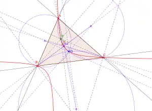 Elle passe par le centre du cercle circonscrit, l'orthocentre, le point symédian et le point de Kosnita du triangle.