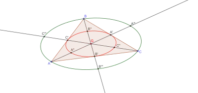 L'ellipse de Steiner d'un triangle est l'unique ellipse tangente à chacun des côtés en leur milieu. De toutes les ellipses inscrites, l'ellipse de Steiner est celle d'aire maximale.