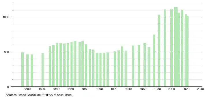 En 2021, la commune comptait 1 017 habitants[Note 4], en diminution de 8,21 % par rapport à 2015 (Marne : −1,22 %, France hors Mayotte : +1,84 %).