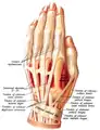 - von Schroeder, Botte et Gellman, « Anatomy of the juncturae tendinum of the hand », The Journal of Hand Surgery, vol. 15, no 4, , p. 595–602 (ISSN 0363-5023, PMID 2380523, DOI 10.1016/s0363-5023(09)90021-1)