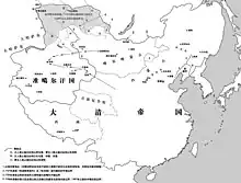La première guerre Dzoungar-Qing, qui dure de 1687 à 1697, s’achève par l'expulsion définitive des Oïrats/Dzoungars de Mongolie. Cette défaite met fin au rêve de Galdan Boshugtu Khan, qui désirait créer en Asie centrale un puissant Khanat regroupant tous les peuples mongols. Il meurt de maladie en 1697[21], en exil dans les monts de l'Altaï, avec seulement quelques fidèles à ses côtés[22]. La seconde guerre Dzoungar-Qing, bien plus courte, éclate en 1720 et voit les Dzoungars perdre la tutelle qu'ils tentaient d'établir sur le Tibet au profit de la Dynastie Qing.