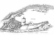 La ville étant désormais fermement aux mains des Portugais, le 1er décembre 1510, Albuquerque reprit son administration et organisa sa défense. L'ancien château a été reconstruit à l'européenne, sous la supervision de l'architecte Thomaz Fernandez, avec 20 tailleurs de pierre portugais et de nombreux ouvriers locaux rémunérés à sa disposition[39]. Elle était garnie de 400 soldats portugais, tandis qu'un corps de 80 arbalétriers à cheval servait de gardiens de la ville, commandé par le capitaine de Goa Rodrigo Rabelo et qui recevait une garde du corps de 20 hallebardiers . Francisco Pantoja a été nommé alcaide-mor (premier magistrat) de la ville. Une garde-rivière a également été créée, avec deux grands voiliers, une galère, un galion et deux brigantines[40].