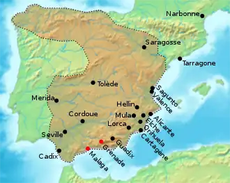 En 711, le général omeyyade Tariq ibn Ziyad débarque à Gibraltar[1], dans la péninsule Ibérique, à la tête d'une armée composée presque exclusivement de Berbères[2]. Il fait campagne plus au nord après avoir vaincu Rodéric à la bataille de Guadalete, après quoi il est renforcé par une armée arabe dirigée par Moussa ibn Noçaïr. En 717, la force combinée arabo-berbère franchit les Pyrénées, la Septimanie et la Provence (734).