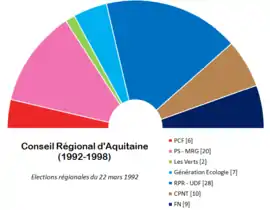 Depuis 1998, le conseil régional d'Aquitaine était composé de 85 membres, répartis de la manière suivante[3] :