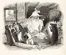 Inspirée d'une fable médiévale anglaise sur les souris qui discutent de la façon de rendre un chat inoffensif : on suggère d'accrocher une cloche autour de son cou, et toutes les souris approuvent l'idée mais aucune n'est disposée à le faire[1]. Reprise par Eustache Deschamps (Le Chat et les Souris)[2], puis par Jean de La Fontaine.