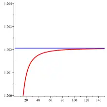 Cette constante était connue avec 128 000 026 décimales en 1998[2], 1 000 000 000[3] en 2003 et jusqu'à 400 000 000 000 décimales en 2015[4].