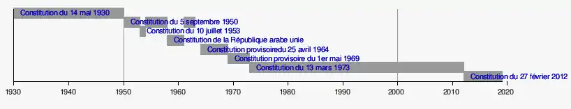Frise chronologique de l'entrée en vigueur des constitutions syriennes